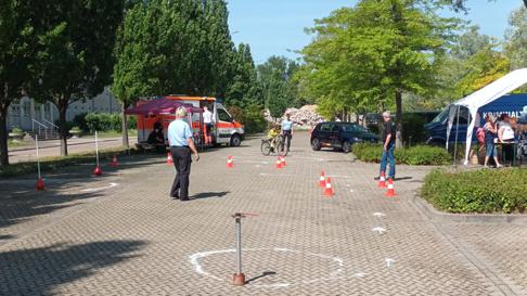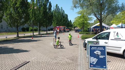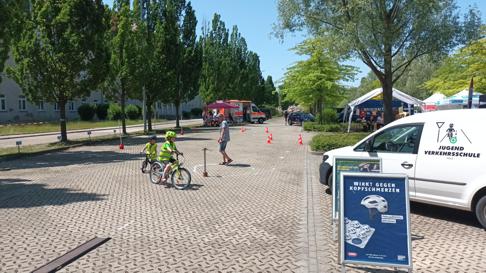 Auch die Verkehrswacht Halle e. V. war mit einem Informations- und Mitmachangebot dabei. Während die Jüngsten ihre Geschicklichkeit auf dem Fahrradparcours unter Beweis stellten, testeten ihre Eltern, Großeltern und älteren Geschwister ihr Reaktionsvermögen bei einer virtuellen Fahrradtour.
